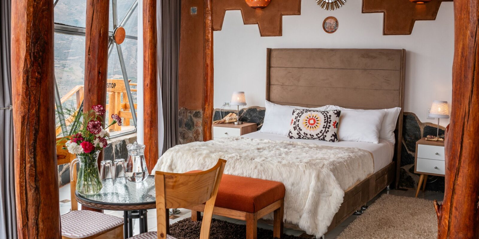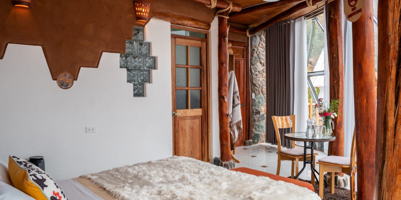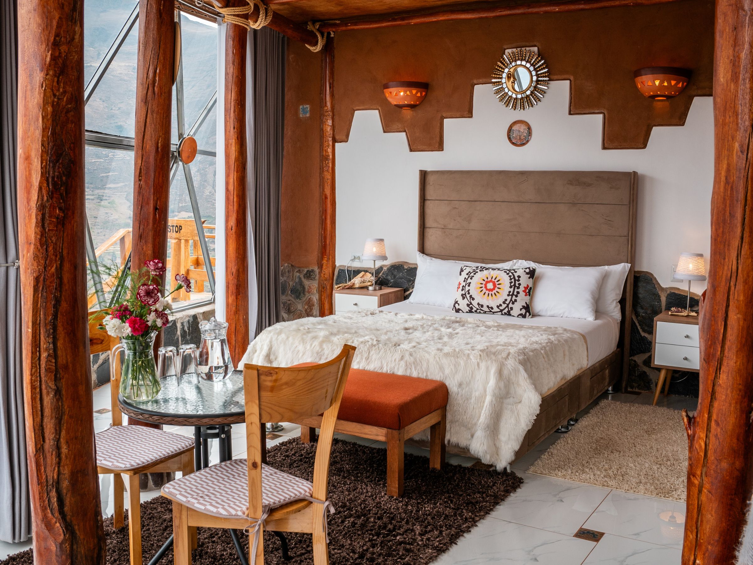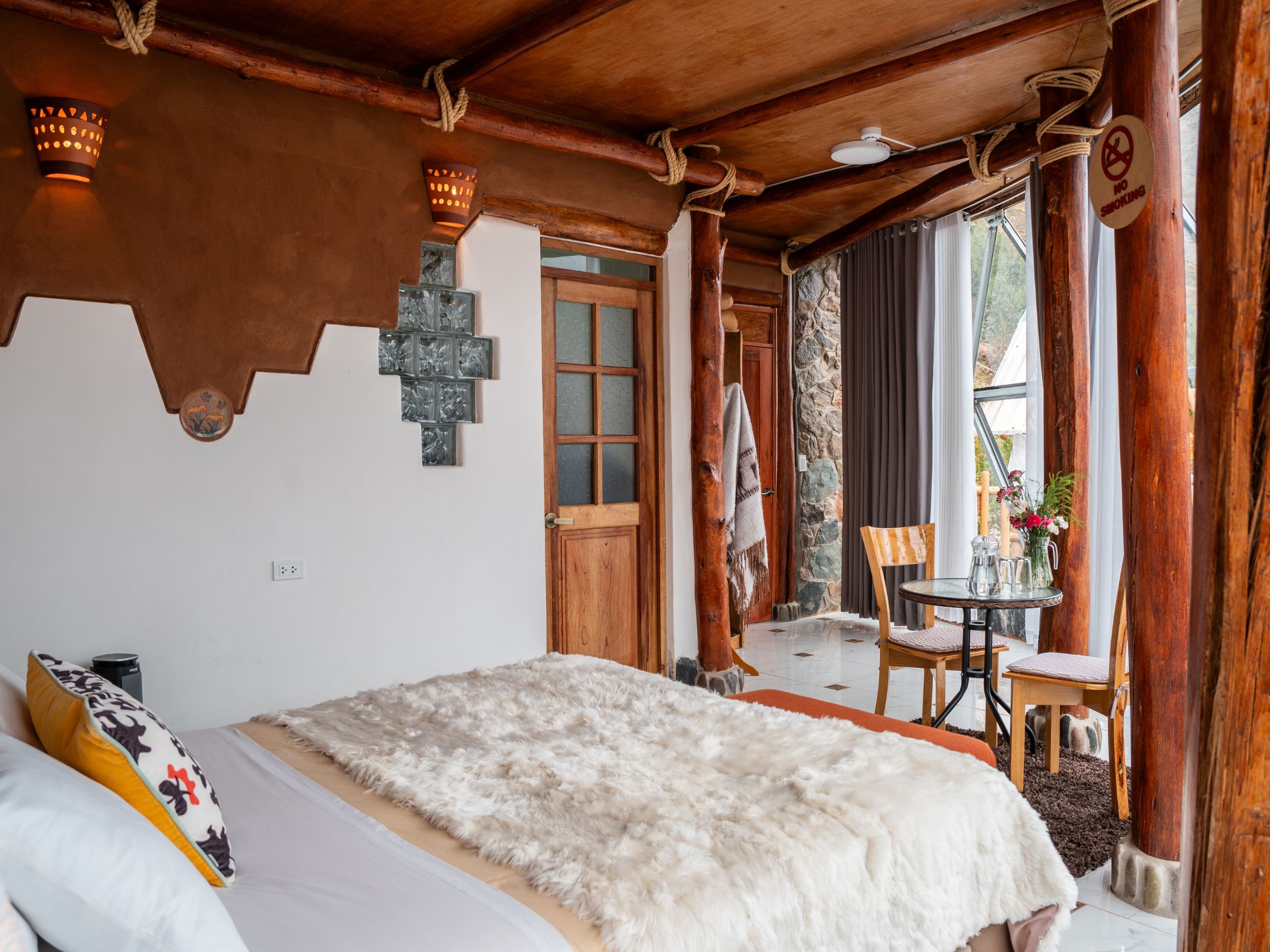 Desde la Suite Serpiente, podrás contemplar el amanecer en tu cama tamaño queen, tomar el sol en tu espacio privado en el jardín o contemplar las estrellas desde el domo. Tu comodidad está garantizada mientras disfrutas de la mejor vista del valle y el pueblo de Ollantaytambo.
